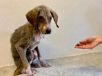 Er kam in einem Zustand, so wie sie halt alle aussehen, die unsere Station betreten. Dünn, ohne Haare, voller Haarbalgmilben, verkommen. Und krank.