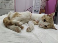 Sein Bein war leider nicht zu retten dafür aber ein sorgen- und schmerzfreies Leben gesichert. Im Gegensatz zur Mehrheit von unvorsichtigen Straßenkatzen musste Peachy nicht kämpfen und wird Leid nicht kennenlernen.