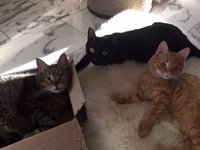 Die beiden Griechen, Stevie und Ernie jagen sich gerne bei hohem Tempo durch die Wohnung und der Blinde folgt hier dem Galopp des Dreibeinigen. Vor zwei Monaten eroberte dann noch ein Rumäne unser Herz. Der junge rothaarige Kater wurde in einer Hausruine gefunden, leider auch nur noch mit einem funktionsfähigen Auge, ein echter Pirat. An dieser Stelle bedanken wir uns sehr bei der Tierärztin Nina Schöllhorn, die Ernie und Charly jeweils operierte! Charly macht die Truppe komplett. Er springt wie ein Eichhörnchen mit seinem buschigen Schwanz durchs Haus. Gerne testet er bei seinen südländischen Brüdern seine Grenzen aus, um sich dann im nächsten Moment kuschelnd an sie zu drücken!