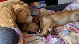 Der kleine Mogli mit seinen Dackelbeinchen hat sich bei uns auch gleich wohl gefühlt, ist sehr unkompliziert und hat sich auf Anhieb mit unseren anderen Hunden verstanden. Es sei denn, es geht um Knabberzeug, da kennt er keinen Spaß!