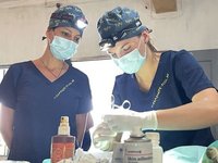 Für mich ist es ein hehres Ziel, die nachfolgende Generation von Tierärzten auszubilden und zu begleiten. Fachlich, aber auch freundschaftlich. Wir schlafen bei den Einsätzen unter einem Dach, wir verbringen jede Minute des Tages miteinander, wir erleben gemeinsam alle emotionalen Höhen und Tiefen. Wir lachen und wir weinen miteinander. Unsere Operationsmethode bei Hündinnen und Katzen entwickelte sich in den vielen Jahren zu einer Technik, die einem minimalinvasiven Eingriff gleicht. Dieses Wissen gebe ich gerne an meine jungen Kolleginnen weiter. Innerlich schmunzle ich, wenn es um die Spezialtechniken geht und die Kolleginnen förmlich an meinen Handgriffen kleben, um das Geheimnis der kleinen Bauchschnitte erlernen zu dürfen.