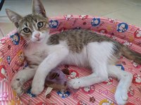 Fünf Tage später geht es einem der Welpen immer schlechter. Er verliert den Kampf. Mein rot-weißes Kätzchen hingegen erholt sich immer mehr.