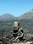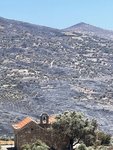 Die Hubschrauber versuchten zu verhindern, dass die Glutnester durch den starken Wind in weitere Nachbartäler getragen wurden. Auf der Seite des Tals, in dem wir versuchten, den Schafstall zu finden, war außer schwarzer Erde und verbrannten Olivenbäumen nicht mehr viel übrig.