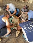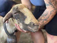 Wir standen per Telefon mit zwei deutschen Großtierpraktikern in Kontakt, da Schafe wahrlich nicht zu unseren Standardpatienten gehören und die Dosierungen der Medikamente komplett anders sind. Ein Tier verlor während unserer Anwesenheit, sozusagen als Spätfolge der Hitze, das Horn einer Klaue, was ohne eine gute und intensive Pflege sein Todesurteil bedeutete.
