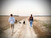 Beim Spaziergang mit Ninas Hunden kommt uns ein Wagen entgegen. Er ist voll beladen mit trockenen Ästen, ein altes Pärchen sitzt vorne, gezogen wird das ganze von einem kleinen Esel, ganz allein. Er ist so langsam, dass wir ihn auf dem Rückweg sogar überholen.