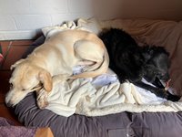 Leiya hatte auch einen gebrochenen Oberschenkel. Aber sie hatte leider auch eine Lähmung des anderen, nicht gebrochenen Hinterbeins. Diese Lähmung war nicht komplett, sie schritt aber bedauerlicherweise fort im Laufe der knappen Woche (das war Rekord!), die zwischen ihrer Abgabe im Tierheim auf Kreta und ihrer Vorstellung in der Klinik in Deutschland verging. Inwieweit das gebrochene Bein auch von Lähmung betroffen war, ließ sich nicht eindeutig feststellen - es sprachen aber einige Untersuchungsergebnisse dafür. Auch hier waren die im Norden angefertigten Röntgenbilder eine andere Klasse als die südländischen und führten nach viel Abwägen und Kopfzerbrechen zu der Entscheidung, ihr weiteres Leiden zu ersparen. Die Lähmung ließ sich zwar auch hier nicht durch knöcherne Läsionen, etwa der Wirbelsäule, erklären, aber es zeigten sich außer der bereits auf den kretischen Aufnahmen sichtbaren Haupt-Fraktur weitere Fissuren, die den Erfolg einer Reparatur des Oberschenkelknochens aller Wahrscheinlichkeit nach ad absurdum geführt hätten. Das, in Kombination mit der ja leider trotz Medikation fortschreitenden, anstatt sich bessernden Lähmung, ließ uns alle gemeinsam schweren Herzens zu diesem Entschluss kommen. Ein trauriges Ende.