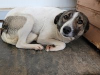 Gemeinsam gehen wir durch die Reihe. Wir bleiben vor dem ersten Zwinger stehen, an dessen Zettel nicht „Sterilizat“ steht. Der Hund ist also noch nicht kastriert. Es ist eine weiß/graue Hündin, die eingerollt neben ihrer Hütte liegt und zittert. Leise öffne ich die Zwingertür und gehe hinein. Horica bitte ich, vor dem Zwinger zu warten. Ich möchte, dass er zuerst zuschaut, wie man mit den Hunden kommuniziert. Außerdem möchte ich die Angst der Hündin nicht noch größer machen.
