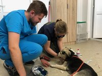 Er ist ein gutes Beispiel dafür, wie man schnell, unkompliziert und gefahrlos die Fangschlinge als Hilfsmittel, statt als Zwangsmittel anwenden kann. Auch von Horica bin ich sehr überzeugt. Er ist hochmotiviert, die Hunde selbst einzuschätzen und in Narkose zu legen. Man kann beinahe täglich zusehen, wie er immer geübter wird. Außerdem ist er unser Sprachrohr mit den rumänischen Arbeitern. Er spricht als einziger englisch und rumänisch und hilft mir bei allen Kommunikationsproblemen aus.