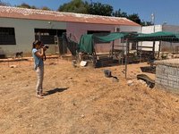 Wir folgen ihm zu Fuß in Richtung Gebell. Vorsichtig sollen wir sein, denn einige der Hunde beißen. Hinter einem Zaun, der eigentlich gar nicht da ist, betreten wir ein Gelände, was sich von den Umliegenden dadurch unterscheidet, dass überall Müll herumfliegt und Futter aus dem Boden zu wachsen scheint. Die Psychopathin begrüßt uns und eigentlich sieht sie ziemlich normal aus. Eigentlich sogar ganz nett. Wir lächeln und lauschen einer Unterhaltung, von der wir natürlich kein Wort verstehen, die aber, so erfahren wir später, dazu dient, Vertrauen und Aufklärung zu schaffen. Die Dame hat Angst um ihre Tiere, denn alle halten sie für verrückt und sie hat auch Angst, dass noch mehr erschossen werden. Deshalb schläft sie seit einiger Zeit unter einem der Olivenbäume.