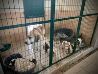 Ein eingespieltes Team, ein eingespielter Ablauf und doch hat man immer ein drückendes Gefühl in der Magengrube. Wir operieren in einem Tierheim und so sind Hundegebell und Hundefiepen unser täglicher Begleiter. Ich nehme mir vor, dieses Mal keinen Blick in das Tierheim zu werfen, denn ich weiß aus vergangenen Einsätzen in Larisa und Veria, wie trostlos der Anblick der Hunde in den Tierheimen ist. Die Tierheime in Griechenland sind nicht mit denen in Deutschland zu vergleichen. Meistens sitzen die Hunde in kleinen Käfigen und dürfen vielleicht zwei Stunden am Tag nach außen. Der Außenbereich ist aber genauso klein und Sozialkontakt zu anderen Hunden haben die wenigsten. Der Boden in den Tierheimen ist immer feucht, da die Reinigungsmethoden immer dieselben sind. Einmal am Tag wird mit einem Wasserschlauch der Kot und Urin in eine Rille gespritzt. Manchmal sind die Hunde in unmittelbarer Nähe und werden ebenso nass gespritzt. Was zurück bleibt ist ein nasser, kalter Boden auf dem die Tiere auch im Winter leben müssen. Oftmals gibt es keine Plastikschale, wo sich die Hunde hineinlegen können und so gibt es kein Entkommen von dem nassen, kalten Boden. Sowohl Welpen, die noch kein ausgebautes Immunsystem haben, als auch alte Hunde, die zum Teil Gelenkprobleme haben oder krank sind, müssen sich in diese Umstände fügen. Auch das Futter ist nicht so zusammengesetzt, wie es die Hunde benötigen. So bekommt jeder Hund dasselbe schlechte Billigfutter, unabhängig vom Alter oder dem Gesundheitszustand.