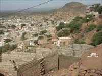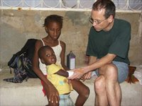 In der Erinnerung verschwimmen diese immer ähnlich ablaufenden Arbeitstage zu einem großen, langen, arbeits- und ereignisreichen Tag, und nur wenn ich mir Einzelheiten in Erinnerung rufe, merke ich, dass es viel zu viele für einen einzelnen Tag sind. Jeden Morgen fahren Ines, Thomas und ich mit dem Taxi von Praia in unsere „Klinik“. Gleich nach der Abzweigung von der Hauptstraße in Richtung Ponta d' Agua ändert sich das Erscheinungsbild, und vieles weist darauf hin, dass wir uns in einem armen Stadtteil befinden: Der glatte Asphalt der Hauptstraße wird von schwarzem Basaltsteinpflaster mit vielen Beschädigungen und Schlaglöchern abgelöst, und es fängt zu rumpeln und zu stauben an. Es gibt zwar auch anderswo in Praia diese Pflasterstraßen, aber die Straße durch Ponta d' Agua ist besonders uneben und staubig. Gehsteige gibt es nur in Ansätzen, und dort, wo sie vorhanden sind, hat sich der Sand der Umgebung bis zur Bordsteinkante angesammelt. Es gibt zwar mehrere Müllcontainer, aber mindestens ebenso viel Abfall liegt auf der Straße. Im Müll laufen Ziegen, Hühner und Hunde umher. Katzen sehe ich in Ponta d' Agua hingegen nur sehr wenige. Ich glaube, dass viele junge Katzen als Hundemahlzeit enden. Die Häuser sind aus billigen, bröseligen Ziegeln aus Beton und Kies, so genannten „Blocos“, erbaut und in den allerseltensten Fällen verputzt. Nicht alle Fenster haben Scheiben, und viele Böden in den Häusern bestehen aus gestampfter Erde. Es gibt aber auch schmucke, mehrstöckige und mit Balkonen und Pflanzen verzierte, bunt gestrichene Häuser hier.Impressionen: Suchspiel: wer findet den Hund?Das Haus, in dem wir arbeiten, ist eines von diesen besseren, und das ganz Besondere daran ist die wunderbare Aussicht auf die Altstadt und das dahinter liegende Meer. Wann immer die Arbeit oder die vielen anwesenden Menschen in und um das Haus mir zu viel werden, kann ich den Blick dorthin schweifen lassen. Um nur diese Schönheiten der Landschaft zu sehen, bedarf es allerdings eines gewissen Hanges zur Romantisierung oder zur Schwachsichtigkeit. Denn die sich zwischen Ponta d' Agua und der auf einem Hochplateau liegenden Altstadt hinziehende „Ribeira“ - ein ausgetrocknetes Flussbett - ist eine große Abfalldeponie und der Abhang dorthin ist nicht minder schmutzig.Zwischen den staubgrauen Häusern und vielen rotbraunen Steinen und Felsbrocken wachsen ein paar verstaubte Akazien. Ansonsten ist die Erde hier übersät mit Müll, vor allem Plastik und Altmetall. Die freien Stellen zwischen den Häusern werden als öffentliche Toiletten benützt. Hinzu kommt, dass zwar fast jedes Haus eine „Fossa“ - eine Sickergrube - besitzt, in die aber alle Abwässer, die Putz- oder Waschmittel enthalten, nicht hineingeleert werden, um die Bakterien in der „Fossa“, die die Exkremente zersetzen sollen, nicht abzutöten. Deshalb landet jegliches Putz- und Waschwasser in hohem Bogen auf der Straße oder am Abhang unter dem Haus, ruhig auch vor der Türe des Nachbarn.Wenn ich aber am Abend vor unserer Klinik unter der täglich größer werdenden Mondsichel und dem meist klaren Sternenhimmel im kühlen Abendwind sitze und auf die Lichter der Stadt, der vorbeifahrenden riesigen Schiffe und der in der Ferne landenden Flugzeuge, die von den anderen Inseln kommen, schaue, müde und zufrieden nach einem gelungenen Arbeitstag, kann ich mir kaum einen schöneren Ort vorstellen. Romantik oder Schwachsichtigkeit?
