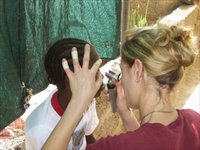 Heute ist der letzte Operationstag für unsere mittlerweile schon sehr klein gewordene Crew. Ana und ich operieren noch eine Hündin und einen Rüden, die beide stark blutende Schnittwunden an den Pfoten aufweisen und die wir bei dieser Gelegenheit auch gleich kastrieren, sowie eine Nickhautdrüsenhyperplasie (Vergrößerung einer Augendrüse) bei einem der kleinen Rassehunde, die hier „Caniz“ genannt werden und ein bisschen wie Pekinesen aussehen. Als letzte OP kastrieren wir noch unsere kleine Hündin Dita, die sich nach der Entfernung der zwei Knochensequester und der Gabe des knochengängigen Antibiotikums Clindamycin prächtig von ihrer alten Unterschenkelfraktur erholt hat und wieder ohne Lahmheit laufen kann. Diese auf einer Müllhalde aufgelesene, mittlerweile ca. sechs Monate alte Hündin wird demnächst zu ihrem neuen und - wie ich annehme - ersten Besitzer nach Cidade Velha, der ältesten Ansiedlung auf der Insel Santiago und wahrscheinlich aller kapverdischen Inseln, gebracht werden. Bei der Suche nach Menschen, die sich in Zukunft um einen „unserer“ Hunde kümmern werden, können wir uns getrost auf das Geschick von Cesaltina verlassen. Ihre Wahl hat bis jetzt immer gepasst. Was ihr dabei zugute kommt, ist die Tatsache, dass kastrierte und behandelte Hunde besonders begehrt sind.Da die Operationen mehr Zeit in Anspruch genommen haben, als ich gedacht hatte, muss ich den für heute geplanten Beginn der Schulung in der Behandlung von verletzten und kranken Tieren und in der Parasitenbekämpfung auf morgen verschieben.26.11.2006Heute ist Sonntag, der mittlerweile dritte Sonntag unserer Arbeit hier in Ponta d' Agua. Es ist schulfrei, und deshalb kommen besonders viele Kinder mit ihren Hunden zur regelmäßigen Deparasitação (Parasitenbekämpfung). Daneben behandeln wir unsere eingestellten Tiere und einige Erkrankungsfälle.In der Zeit, die verbleibt, versuche ich, unseren Lagerstand an Medikamenten und Operationsmaterial fertig zu stellen, damit wir einen Überblick darüber haben, was für unseren nächsten Einsatz hier noch vorhanden ist. Da unser Material erst so spät aus dem Zoll zu bekommen war und wir bis vergangenen Montag von unseren Vorräten zehren mussten, ist unser Lager noch ziemlich gut ausgestattet.
