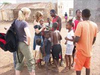 Wenn dann die abendlichen Behandlungen unserer stationären Patienten und die Vorbereitungsarbeiten für den nächsten Tag erledigt sind, ist es meist nach neun Uhr abends. Danach plaudern wir noch ein wenig und entspannen uns bei einem Bier oder gehen noch etwas essen.Manchmal schaue ich dann noch ins Internet - Café, um zu erfahren, was es zu Hause Neues gibt, aber meist bin ich dafür schon zu müde.Am Samstag, den 18.11. gehen wir alle zusammen abends ins „Quintal da Musica“, einem von einer Kulturkooperative betriebenen Innenhoflokal, wo fast täglich Live - Musik gespielt wird. Es ist sehr laut hier und für meine - andere Eindrücke gewöhnte - Augen sehr unkapverdisch, weil mindestens die Hälfte der Gäste hier Touristen sind. Wir alle fühlen uns ein bisschen deplaziert