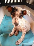 Der kleine "Lucky Pooh" wurde ebenfalls von Christina gefunden, er war in einem erbärmlichen Zustand. Abgemagert und die Haut aufgekratzt durch die Räudemilben, beschlossen wir, ihn ebenfalls zu behalten und aufzupäppeln. Er ist nach Ende der Kastrationsaktion zu Barbara gekommen, sie lebt zeitweilig aus Sal und wird ihn weiter pflegen bis er ausreisen darf und wir ein schönes Zuhause für ihn gefunden haben. Ein Stab von Helfern ersetzt eine Krankenstation...