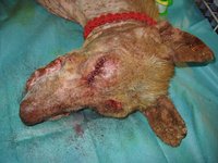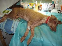 Aber (auch das hatte ich gelernt) es läuft nicht immer alles so rund, wie Frau es sich wünscht. Einem von Räude geplagten Hund mussten wir ein Auge entfernen. Da war nichts mehr zu retten. Wir tauften ihn auf den Namen "Pirata" und behielten ihn eine Woche bei uns in Pflege, um den dünnen Kerl aufzupäppeln. Schon Tage nach der ersten Injektion gegen die Räude sah man, wie sich sein Fell zum Besseren veränderte. Auch die Entwurmung hatte er bitter nötig - aber darauf möchte ich jetzt hier nicht näher eingehen - schon gar nicht mit Fotos... Am Ende der Woche brachte Christina, die extra zum Helfen nach Sal geflogen war, Pirata wieder zurück in die Freiheit und fuhr noch einige Male hin, um ihm Futter zu geben und uns zu berichten, dass er schon viel, viel besser aussah. Wer die Verbesserung der Lebensqualität, die Gewichtszunahme, das Sprießen des Haarkleides, überhaupt das ganze positive Verhalten der Tiere mit eigenen Augen erlebt, für den wird die abstrakte Zahl von tausenden sogenannter "anderer Operationen" die wir beim Tierärztepool akribisch aufschreiben, sehr nah und schön.