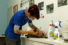 Der zweite Tag verlief ähnlich wie der erste, bis auf einen erwähnenswerten Fall: Bei einer Katze, die ich rasierte, fiel mir etwas am Bauch auf, das aussah wie eine relativ frische Kastrationsnarbe, jedoch gab sie uns ohne Markierung im Ohr und ohne Mikrochip keinen weiteren Hinweis. Nach reiflicher Überlegung entschied Marga, die Katze zu operieren. So kam heraus, daß das, was genausogut eine Narbe hätte sein können, in Wirklichkeit eine Hautinfektion war. Die Katze war natürlich noch nicht kastriert.
