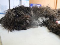 Am Samstag kenne ich die Löcher des Schotterweges schon besser, um kurz nach 9.00 Uhr bin ich da. Natürlich arbeiten die beiden schon seit über einer Stunde. Ansonsten sind wie gestern Thanassis und die beiden Mitarbeiterinnen Maria und Olga anwesend. Zum Team des Tierheims gehörend habe ich gestern auch noch zwei starke Männer kennen gelernt, die haben heute offensichtlich frei. Es ist schon eine Freude, wenn man wie hier tierliebe Griechen erleben darf. Die helfen übrigens richtig mit, indem sie auf freundliches Kommando die Hunde zur Vorbereitung und die Operierten wieder "to spiti" - ins Haus bzw. den Zwinger bringen. Thanassis ist ein junger griechischer Arzt, der Montag bis Freitag die Tiere betreut und ebenfalls mithilft wo er gebraucht wird.