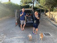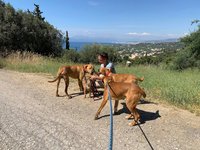 Ich stelle Ihnen einen Hund vor. Einen ganz normalen Hund. Gesund und eigentlich sind es zwei. Die Boxerakis, wie Sabrina Klüßendorf die drei getauft hat. Einer ist bereits in Deutschland, die noch verbliebenen sollen unsere Gäste bei der Rückfahrt nach Deutschland werden. Sie sind jung verspielt aber recht scheu. Ich habe eine Woche Zeit, um ihnen die Angst vor allem zu nehmen, vor allem aber vor der Rückfahrt. Das heißt Halsband, Leine, Vertrauen und die Panikattacken, wenn irgendwo ein Stuhl umfällt oder eine Tüte raschelt. Nun versuche ich jede freie Minute mit ihnen zu spielen, sie an mich zu gewöhnen, ihnen Halt zu bieten für das, was während der Rückfahrt nach Deutschland auf sie zukommen wird. Das Problem: wir verlieben uns ineinander. Es machte mir schon immer Spaß, mit Hunden zu arbeiten, aber die Zeit liess es nie zu. Jetzt nehme ich mir die Zeit und merke, wie dieses supersüße Boxermädchen immer mehr auftaut. Gleichfalls wie ihr Bruder. Wir spielen, wir toben, und merken kaum, wie sich das Band des Vertrauens immer enger um uns bindet. Ich werde traurig sein, wenn ich sie in Deutschland abgeben muss. Und sie werden traurig sein, weil sie als Geschwister getrennt werden und sich wahrscheinlich nie wieder sehen werden. Aber das ist der Preis für ein hoffentlich langes und sicheres Leben. Genau das wäre im Tierheim von Ierapetra wahrscheinlich nicht gegeben, von wo wir sie mit zu uns nahmen. Zwerge gibt es dort reichlich…