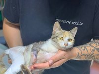 Ab jetzt entscheiden nicht mehr wir über Siras Leben. Aber wenn jemand kämpft, dann diese kleine Katze. Wenn jemand zeigt, dass Aufgeben niemals eine Option ist, dann diese kleine Katze. Und wenn uns jemand zeigt, dass der Lebensmut auch in schwierigen Zeiten nicht verloren gehen muss, dann zeigt uns das Sira. So wie sie nach ihrem tragischen Unfall den Kopf in die gereichte Futterschüssel steckte und sich erst einmal den Bauch vollschlug, so als wäre der Brei hinter ihrem Kopf nicht ihr Körper, sondern eine nicht weiter ernst zu nehmende Bagatelle. Das erzählte sie Melanie mit einem Schnurren und schaffte damit den Auftakt zu ihrem und letztendlich auch Melanies Kampf.