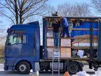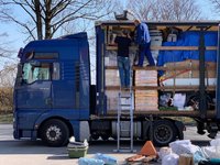 So hielt Nikos diese Woche in Sulzemoos mit einem eigentlich komplett vollen LKW bei Melanie vor der Tür. Melanies Garage ist inzwischen das Hauptlager für Kreta-Spenden geworden.