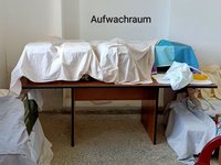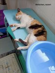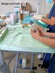 Die Katzen kommen in ihren Boxen zunächst in den Vorbereitungsraum. Sie werden mit großen Tüchern abgedeckt. Gerlinde richtet auf einem riesigen Tisch alles zur OP Vorbereitung her. Marga und Gerlinde sind ein eingespieltes Team. Gerlinde setzt die erste Katze in eine von fünf von uns mitgebrachten Quetschboxen um. Dabei erhält jede Katze eine fortlaufende Nummer, die auch auf ihre Transportbox geklebt wird. So wird sichergestellt, dass jede Katze wieder dorthin zurückkommt, wo sie gefangen wurde. In der Quetschbox wird der Katze das Narkosemittel gespritzt. Ist sie eingeschlafen, nimmt Gerlinde sie heraus, klebt ihr ihre Nummer auf das Fell und legt sie auf den großen Tisch. Dort werden die Ohren gesäubert, die Zähne überprüft und die nötigen Stellen rasiert. Gerlinde spritzt den Katzen eine Entwurmung, ein Schmerzmittel und ein Antibiotikum.