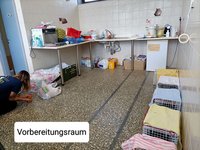 In den Kastrationsräumen werden wir bereits von Gerlinde Heiss erwartet, die selbst auch schon einen Schwung Katzen zur Kastration mitgebracht hat. Gerlinde kommt aus Heidelberg, lebt aber schon viele Jahre mit ihrem griechischen Ehemann auf Kreta. Sie spricht fließend griechisch, kennt viele der Einheimischen und Eingewanderten und hat ein Netz von freiwilligen Helfern zum Einfangen der Katzen. Über das Handy ist sie ständig am Organisieren und Koordinieren der Katzentransporte. Sie übernimmt auch die Pflege der Stationstiere, wenn gerade niemand sonst da ist. Unersetzlich. Wir entladen den Transporter und richten alles her.
