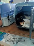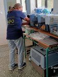 Kathi, genau wie ich zum ersten Mal dabei, schaut erst Gerlinde, dann Marga über die Schulter und kann aufgrund ihrer medizinischen Ausbildung schnell voll mitarbeiten. Sie ist begeistert von der Effizienz der Operationsmethodik und versteht sich sofort mit Marga. Ich übernehme das Umsetzen der Katzen in die Quetschboxen, das Reinigen der Transportboxen und die Nummerierung der Patienten. Es werden von freiwilligen Helfern noch mehr Katzen gebracht. Oft haben die Helfer Essen und Getränke für uns dabei und warten geduldig, bis ihre Kandidaten wieder transportfähig sind. Das dauert mindestens drei Stunden. Nach der OP kommt die Katze zurück in ihre ursprüngliche Transportbox und bleibt zur Beobachtung im OP Raum. So können Marga oder Gerlinde schnell reagieren, wenn ein Patient sich übergibt, was durch die Narkose häufiger vorkommt. Bei den Straßenkatzen kann nicht gewährleistet werden, dass sie nüchtern zur OP erscheinen und bei Erbrechen besteht Erstickungsgefahr. Erst wenn die Katze ihren Kopf selbst wieder heben kann, wird sie aus dem OP entlassen. Dann übernimmt entweder der Helfer, der sie gebracht hat oder die Boxen werden in den Nebenraum gestellt und mit Tüchern abgedeckt. Sie gehen dann am Abend wieder mit uns oder Gerlinde zurück zum Übergabeort, wo sie gegen neue Patienten getauscht werden. An manchen Tagen ist es für eine Übergabe zu spät und die Tiere müssen ins NLR mitgenommen werden. Dann findet der Tausch am nächsten Morgen statt. Der OP Tag in Zouridi beginnt um 9 Uhr und endet, wenn der letzte Patient wieder in seiner Box liegt. Am Abend, wenn die letzte Katze in die Quetschbox umgesetzt ist, wird auch der letzte Schwung OP Besteck gereinigt. Schmutzige Handtücher und Abdecktücher kommen in den Wäschesack, die wachen Katzen werden aus dem OP gebracht. Die gebrachten Lebensmittel müssen verpackt und verräumt werden, Geschirr gespült, der Boden gewischt. Bis unser Transporter wieder beladen, alles aufgeräumt und geputzt ist, wird es 17 Uhr. Ein recht früher Feierabend, wie mit gesagt wird.