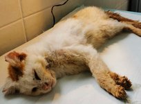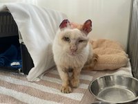Zwischendurch überkommt es mich und ich möchte das eine oder andere Kätzchen einfach knuddeln und das beglückende Gefühl rauslassen, bei dieser guten Sache mitwirken zu können. Und immer gibt es ein Schicksal, das einem besonders nachgeht. Dieses Mal ist es Janko, dieser kleine Kater in erbärmlicher Verfassung, Hautkrebs an den Ohren, gammlige Zähne, ein kaputtes Auge, abgemagert. Einfach nur schön zu beobachten, wie er am ersten Tag nach der Operation dankbar das Futter annimmt, die Wärme genießt, sich bereits ein bisschen anfassen lässt und sofort zu verstehen scheint, dass er von nun an in Sicherheit ist. Wie er am zweiten Tag zur Begrüßung ein zartes Maunzen von sich gibt, in Erwartung seines Frühstücks.