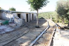 Dieses Nichts sieht am Abend so aus: Abwassergrubendeckel neu in Beton gegossen. Das Grundstück von Unkraut befreit. Die Garage leergeräumt und den dreckigen Boden gekärchert. Fünf Olivenbäume geschnitten. Stromanschluss zum linken Hundehaus angeschlossen . Eine verletzte Krähe eingefangen. Vier Ladungen Müll weggefahren. Ein ganz entspannter Sonntag eben.