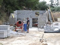Die letzten Tage habe ich fast jeden Morgen in diversen Baugeschäften verbracht. Leider dauert das Einkaufen ziemlich lange, da die Verständigungsprobleme nun mal existieren. Was aber die Hilfsbereitschaft und das Bemühen angeht, die Dinge, die nicht vorhanden sind, zu bestellen oder irgendwo anders her zu besorgen, ist unglaublich. An dieser Stelle kann sich der Einzelhandel in Deutschland eine gehörige Scheibe abschneiden. Auf dem Baugelände des Geschäftes, in dem wir zum Stammkunden geworden sind, leben fünf Katzen. Die äußerst bemühte und nette Verkäuferin hat nicht viel mit Katzen am Hut, jedoch füttern die Arbeiter die Tiere. Zwei davon sind verschmust, die andern recht scheu. Im Laufe der Zeit wird die Verkäuferin immer neugieriger, was wir denn hier bauen. Außerdem sind wir so ziemlich die einzigen, die eine ordentliche Rechnung verlangen. Bei diesem Thema fällt mir auf, dass wir bei fast jedem Einkauf gefragt werden, ob wir die 24 Prozent Mehrwertsteuer zahlen wollen oder nicht. Übersetzt heißt das, dass immer noch sehr viel "schwarz" gehandelt wird. Wir fragen nach und erhalten durchweg die Antwort, dass nur das sie vor der Pleite rettet. Die steuerliche Belastung sei so hoch, dass sie ihren Laden schließen könnten, wenn nicht viel "so" bezahlt wird. Richtig rund läuft es noch nicht in Griechenland.