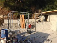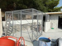 Beziehungsweise der Schweisspunkt. Und so messe, markiere, schneide, entgrate, schleife, schneide, bohre, schraube, düble und vor allem schweisse ich drei Wochen lang was das Zeug hält. Von frühmorgens bis vormittags arbeite ich im Freien an den Zwingern, dann tagsüber am und im Haus (hier ist auch noch genug zu tun), abends wieder an den Zwingern.