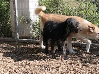 Mein hellbrauner Schatz Leyla, die mich vor lauter Angst vor Wochen am liebsten gebissen hätte, hat mit endlos vielen Trainingsstunden (Danke an alle, die sich stundenlang zu ihr setzten) Vertrauen gefunden und geht bald zu einer Hundetrainerin in Süddeutschland. Sie ist schon viel, viel besser geworden, aber mit ihr muss weiter gearbeitet werden.