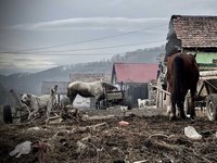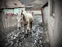 Vor einigen Jahren erweiterte sich unsere Hilfe über Hunde und Katzen hinaus. Wir wollten auch etwas für die Arbeitspferde tun, deren Anblick für uns schon lange kaum zu ertragen war. Diese Pferde sind häufig in körperlich sehr desolatem Zustand. Der Ernährungszustand ist mangelhaft, sie sind von allen nur denkbaren Parasiten befallen, leiden unter chronischen Atemwegserkrankungen, Verletzungen und vor allem an Lahmheiten, die sehr häufig dem katastrophalen Hufbeschlag zuzuschreiben sind. In diesem schlechten Zustand müssen sie weiterarbeiten, die Kutschen schwerbeladen durch den Stadtverkehr oder Bäume aus dem Wald ziehen. Es ist kaum zu ertragen, was diesen Tieren abverlangt wird und wie sehr sie dabei leiden. Wir begannen zunächst damit, kostenlosen Hufbeschlag anzubieten. Die Anfänge waren nicht einfach, denn das menschliche Miteinander in diesen Gemeinschaften ist durchaus anders, als wir es gewohnt sind. Es herrschen sehr raue Umgangsformen, Gewalt und Alkohol sind an der Tagesordnung. Pünktliches Erscheinen, Zuverlässigkeit, organisiertes, zielgerichtetes Arbeiten, höfliche Umgangsformen, all das dürfen wir dort nicht erwarten. Schnell kann man an den Punkt geraten, an dem einem das Chaos dort über den Kopf wächst, man sich erschlagen fühlt angesichts all der Probleme und man sich lieber wieder Schauplätzen zuwendet, an denen man zuvorkommend behandelt wird.