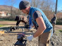 Wir fuhren in die Siedlung, um bei den Ärmsten der Armen die Pferde zu beschlagen. Wir kennen den Ort, die Menschen kennen uns. Die ersten Pferde kamen. Das erste, Mircea, ein braver Schimmelwallach, war kein Problem. Er bekam seinen Beschlag und schon zwei Stunden später trabte er mit einem Wagen voller Holz aus dem Wald kommend an uns vorbei. Doch dann kamen die zwei Doras. Dora eins, ein ca. zehnjähriges, leichtes Pferd - eher ein Pony - hatte hinten rechts eine Problematik am Huf, die wir ohne erweiterte Diagnostik nicht exakt einschätzen konnten. Vermutlich ein Bänder- oder Sehnenriss. Das Bein durchtrittig, der Huf ohne jede Stabilisierung. Dann geht das Erklären los. Dieses Pferd sollte nicht mehr arbeiten, wir können nicht helfen. Auch in Deutschland wäre Hilfe bei solch einem Fall schwierig. Die nächste Dora kannten wir inklusive ihrer Lahmheit bereits vom letzten Besuch. Auch hier war es ohne Diagnostik nicht möglich, etwas zu tun. Ein Beschlag mit Platte und Silikonpolster war der Versuch, ihr das Laufen erträglicher zu machen. Auch sie wird arbeiten müssen.