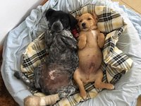 Als die Inkubationszeit der Parvovirose überschritten ist, sind wir sehr erleichtert. Trotzdem sind sie weiterhin kränklich, haben schwer mit extremem Wurmbefall und Räude zu kämpfen. Als dies überstanden ist, folgen Giardien und Haarlinge. Doch plötzlich machen sie nach ca. 3 Wochen einen Schub. Das Fell wächst rasant nach, sie wachsen und nehmen Form an. Was für eine Freude und Erleichterung! Als sie auch die erste Impfung überstanden haben ist klar: Sie haben es geschafft! Alle Mühe war es wert und wir sind mächtig stolz.