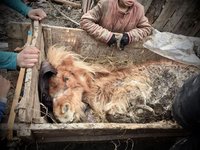 Und so stehe ich plötzlich vor Dir und alles, was ich in diesem Moment sagen kann ist: "Es wird nie wieder jemand böse zu Dir sein, das verspreche ich Dir. Wir werden uns so gut um Dich kümmern, wie es nur irgendwie geht." Unsere Augen treffen sich und da ist eine Verbindung, die ich mir nicht erklären kann. Eine schmerzliche Verbindung, denn es ist, als ob ich all Dein Leid spüren kann. Ich sehe all die Jahre sträflicher Vernachlässigung vor mir. Ich sehe Dich in Deinem dunklen winzigen Verschlag, tief in Kot, Urin und Schlamm eingesunken. Ich sehe das schimmelige Brot und die Maiskolben, die Dein Futter waren. Ich sehe, wie die Kinder an Dir zerren, auf Dich einschlagen, von links nach rechts ziehen und ununterbrochen auf Dich einbrüllen. Du erträgst das alles mit hängendem Kopf. Still, duldsam, niemals bereit Dich zu wehren.