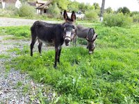 Viele Menschen waren daran beteiligt, dies zu ermöglichen. Und besonders viele Hände halfen mit, den tollen Stall für sie zu erbauen, in den sie einziehen sollten. So kamen sie also an, nach einer langen und abenteuerlichen Reise von Slatina. Geduldig, ruhig und bescheiden bezogen sie ihr Quartier. Von Anfang an, war es eine Freude, sie um uns zu haben. Mehr und mehr blühten sie auf, kamen zu Kräften und ließen gesundheitliche Probleme hinter sich. Ahimsa war immer die ruhigere und vernünftigere als Santosha, welcher ständig Unfug im Kopf hat. Man merkte ihnen deutlich an, dass Ahimsa ein paar Jährchen älter war. Recht schnell machten sie klar, dass das mit den Spaziergängen, so wie wir uns das dachten, nicht in ihrem Sinne war. Sie hatten eigene Vorstellungen von Richtung, Geschwindigkeit und vor allem von der Anzahl der Futterpausen. Sie bevorzugten ihre Freiheit und hatten das große Glück, dass es in dem fast ausgestorbenen Dörfchen Sapartoc möglich ist, auch immer wieder freizulaufen und nach Herzenslust zu grasen, wo auch immer ihnen danach war.