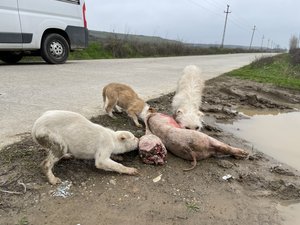 In Rumänien spielen sich Szenen ab, die wären in Deutschland einfach undenkbar. Wie kommt das geschlachtete Ferkel an den Straßenrand, fragt man sich. Die ausgehungerte Hundefamilie freut sich jedenfalls über diese Gelegenheit. Wenige Minuten später werden sie jedoch von einem großen Hund angegriffen, der "die Beute" für sich beansprucht. So nahmen wir die drei armseligen Geschöpfe zu uns und auf unserer Pflegestelle konnten sie sich erholen und zu Kräften kommen.