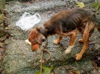 Eine Frau hat ihn beim Wandern entdeckt. In einer nassen, kalten Schlucht an einem zwei Meter langen Seil festgebunden. Manchmal reicht ein Bild, man braucht nichts zu wissen, man will nur das Tier befreien.