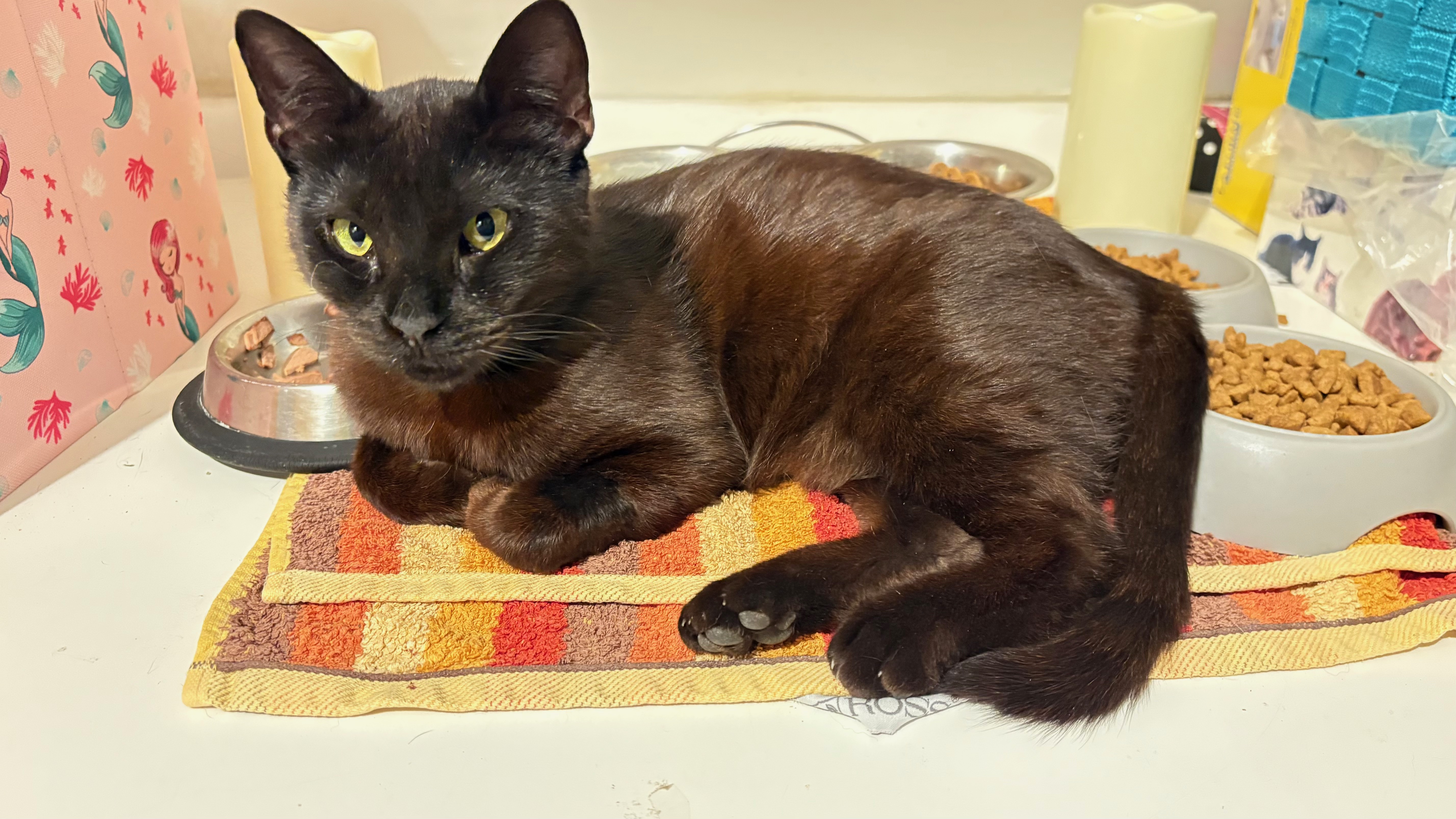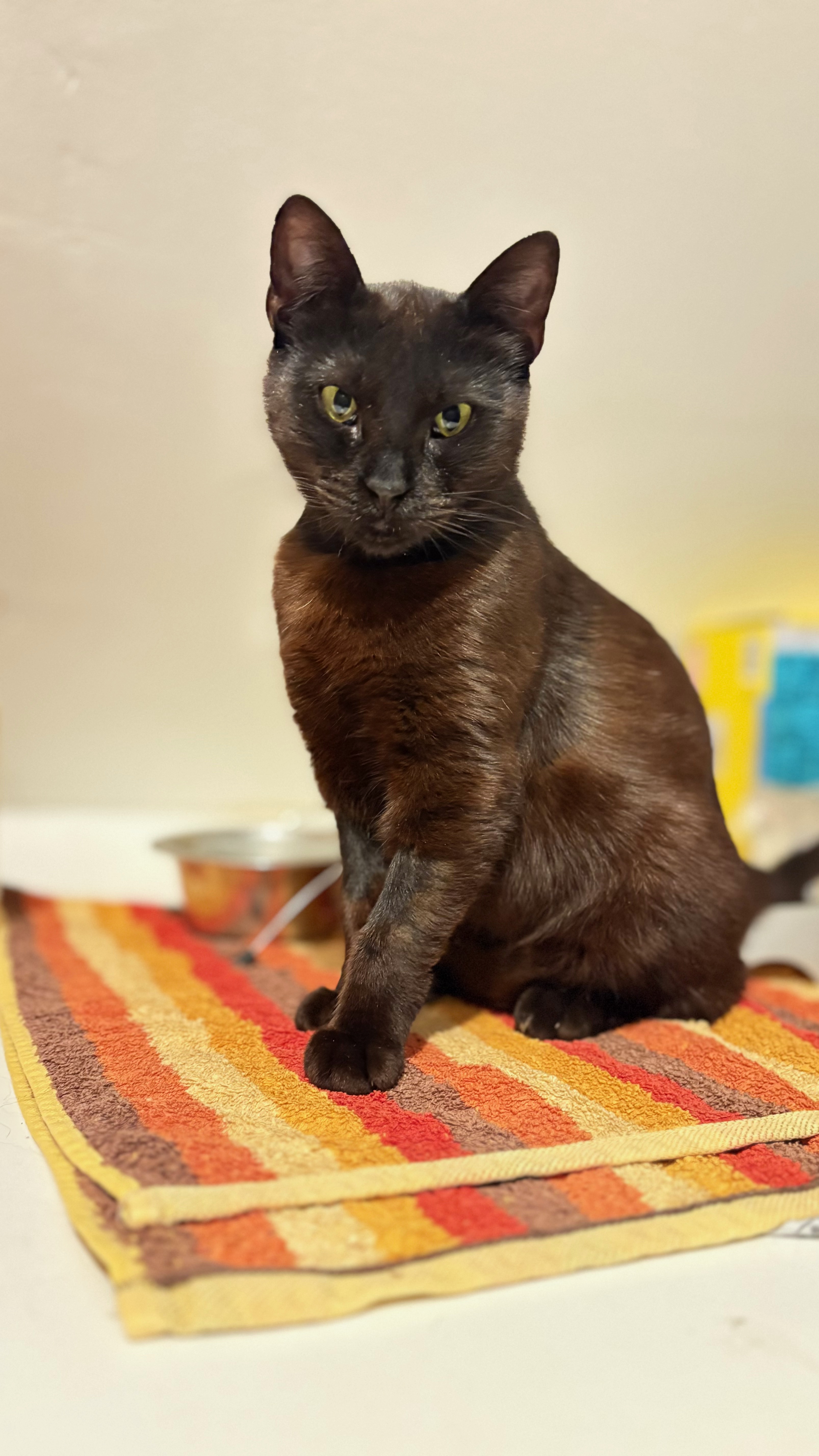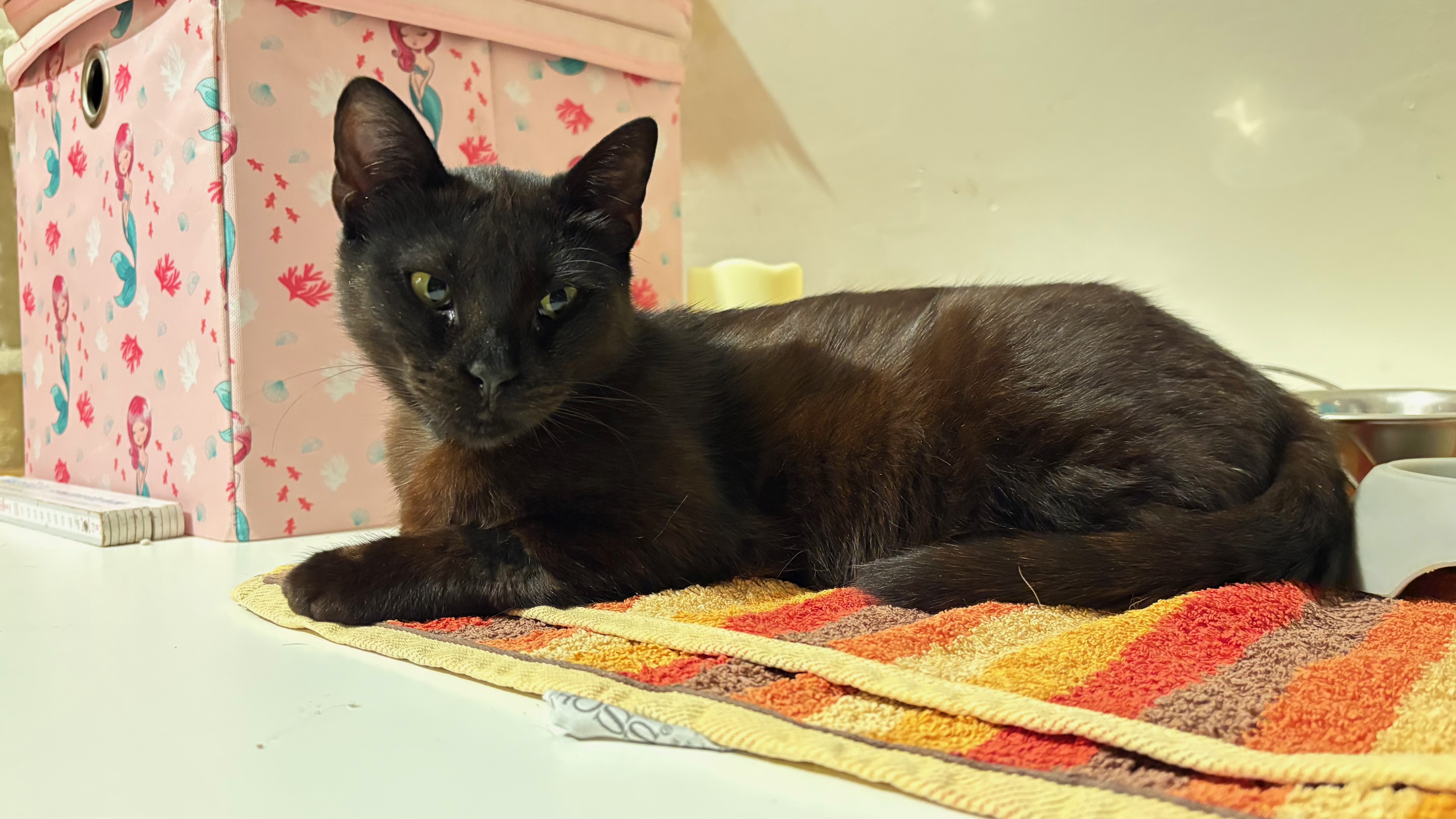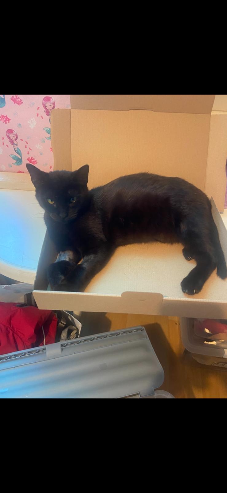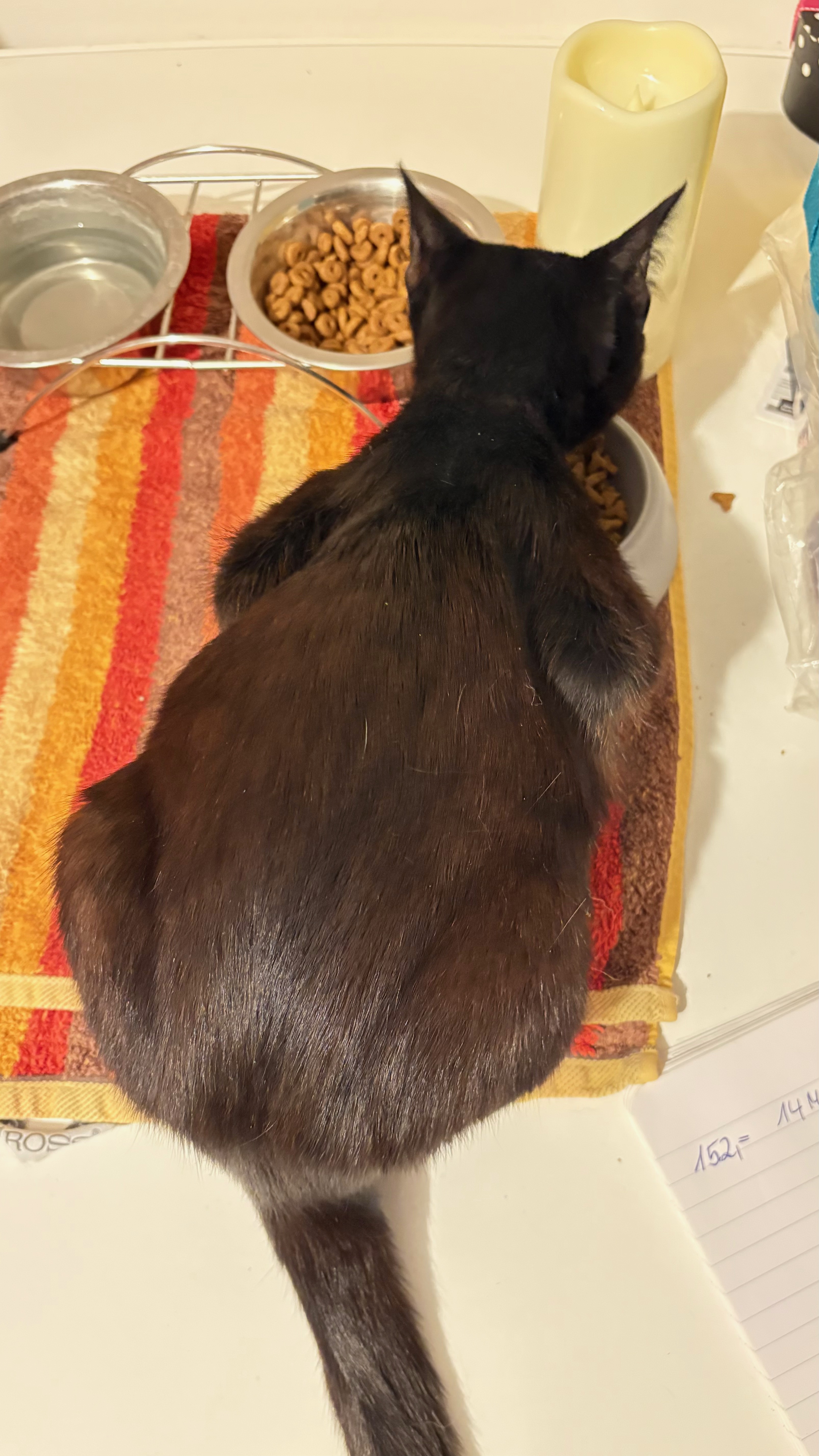 Heute, nur wenige Monate später, ist aus der kleinen, zerbrechlichen Katze eine bezaubernde, charmante Dame geworden. Etwa 3 Jahre alt, schwarz wie Mitternacht und mit einem Blick, der Geschichten erzählt – von Stärke, Mut und Neuanfang.