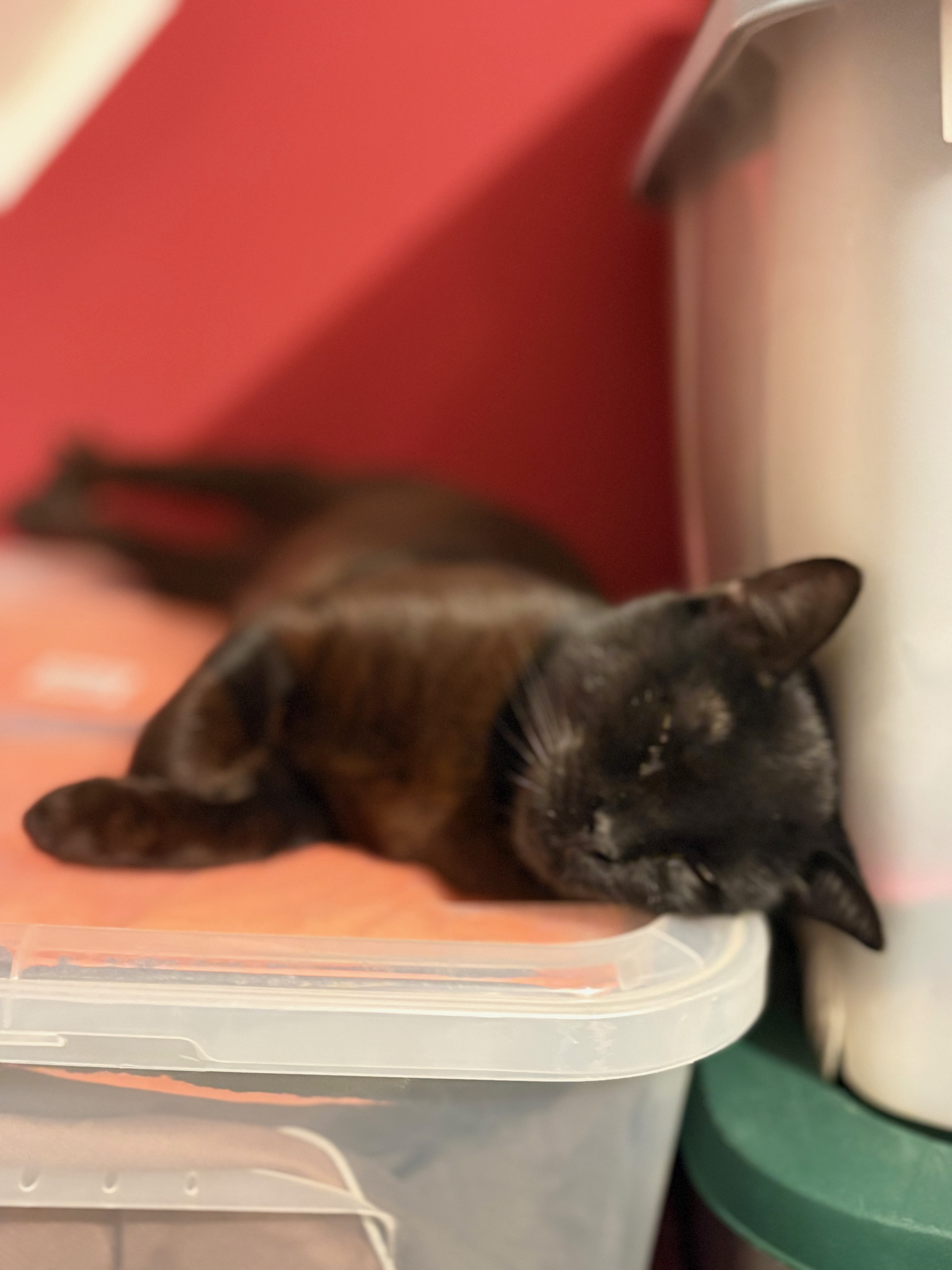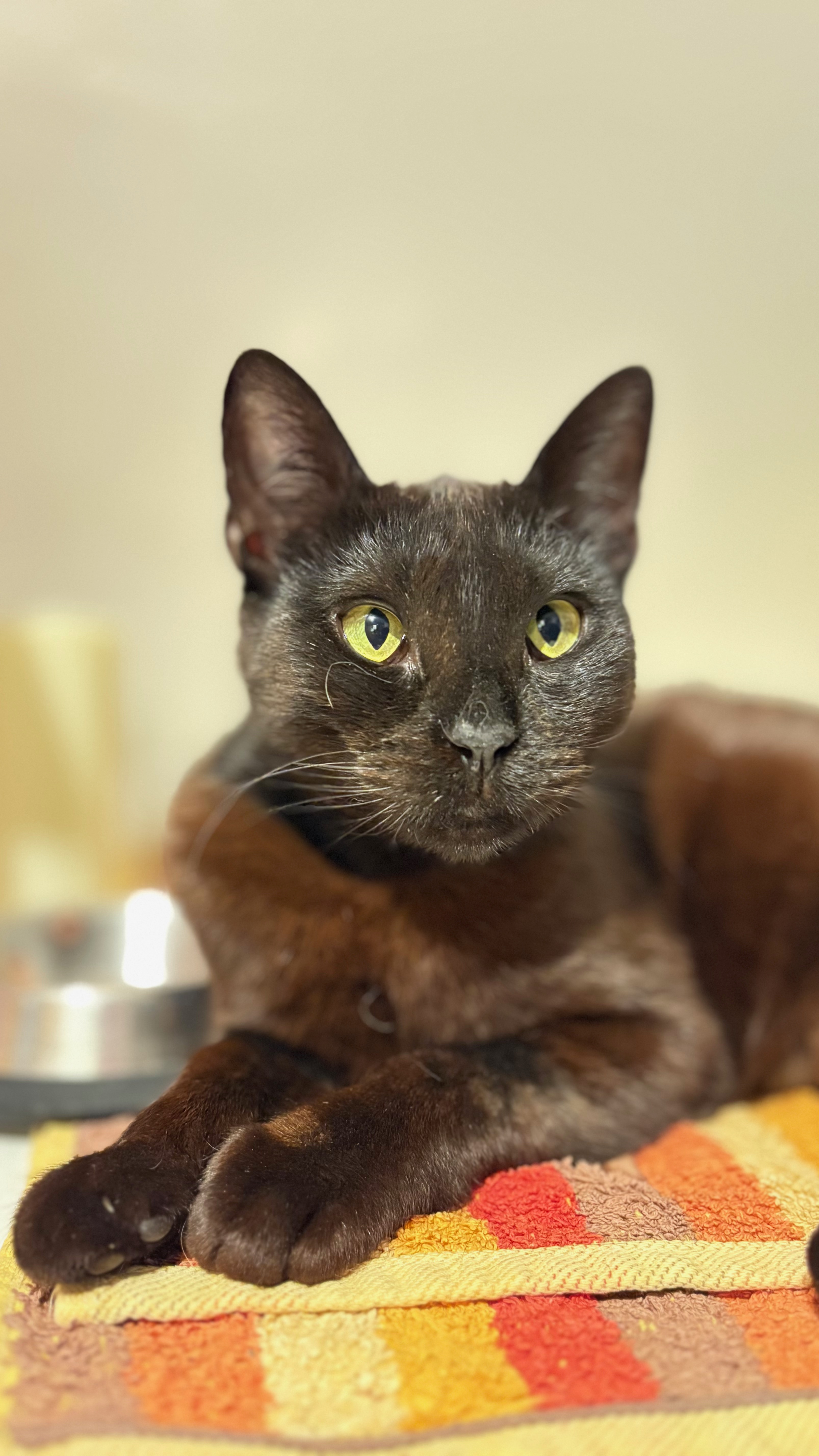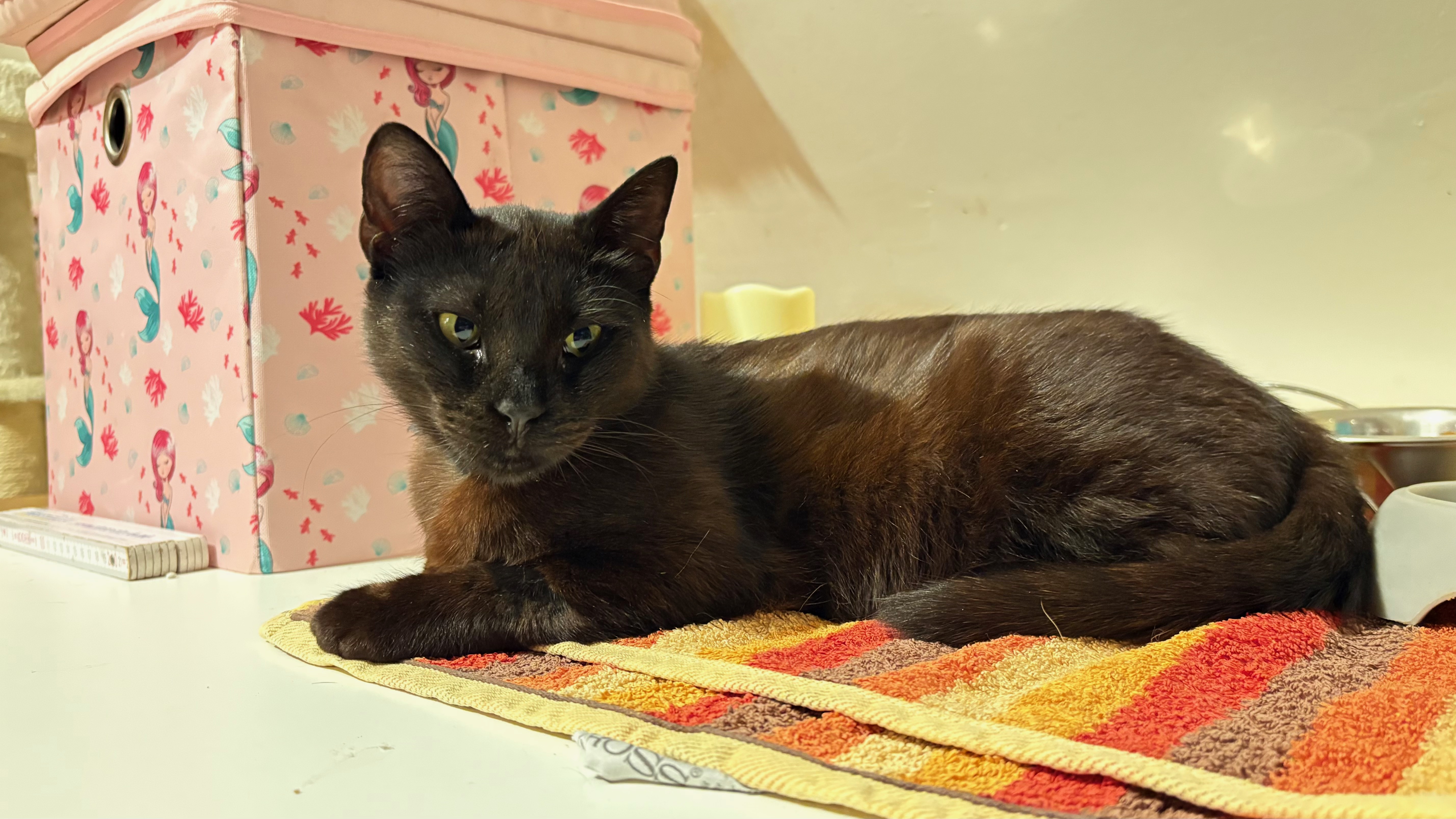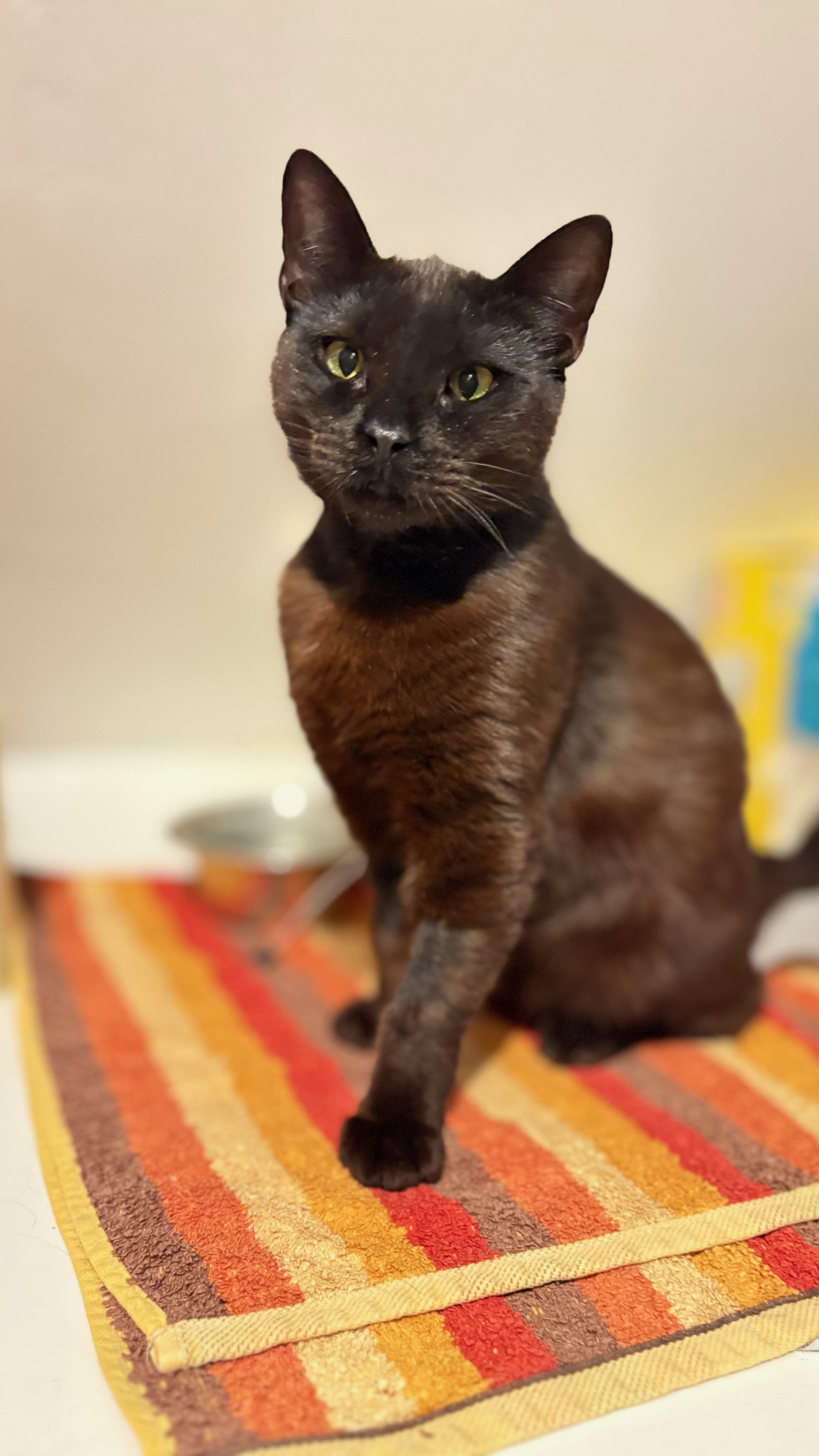 Heute, nur wenige Monate später, ist aus der kleinen, zerbrechlichen Katze eine bezaubernde, charmante Dame geworden. Etwa 3 Jahre alt, schwarz wie Mitternacht und mit einem Blick, der Geschichten erzählt – von Stärke, Mut und Neuanfang.