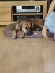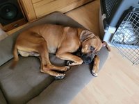 Der kantige, aber liebenswerte große Rüde hat einen Leishmaniose-Titer, der mit Medikamenten und purinarmer Ernährung aber gut im Griff zu halten ist.