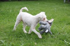 Hier hat sich Lexy schnell in den Alltag eingelebt. Sie hat immer gute Laune, spielt und tobt gerne mit ihren Menschen, mit ihren Kuschelbären oder auch mit den anderen Hunden. Auch mit Kindern hat sie kein Problem. Lexy findet kuscheln absolut super. Sie sitzt oder liegt gerne auf dem Schoß und auch auf dem Sofa kuschelt sie sich gerne an einen ran. Lexy ist insgesamt recht unkompliziert. Man kann sie überall mit hinnehmen z.B. in die Stadt, ins Café, sogar Seilbahn ist sie schon gefahren. Sie fährt gerne Auto, läuft prima an der Leine und geht sehr gerne spazieren. Lernen gehört jedoch nicht zu ihren Stärken. Sie ist oftmals einfach zu hibbelig und kann gar nicht richtig aufnehmen, was man von ihr möchte. Sie versucht es schon irgendwie richtigzumachen, tut sich aber dabei schwer. Daher hat sie auch ihre Schwierigkeiten mit Stubenreinheit. Lässt man sie regelmäßig raus, dann klappt es gut. Aber wenn sie alleine ist, gibt sie ihrem Bedürfnis nach. Daher wäre ein kleiner Garten von Vorteil.
