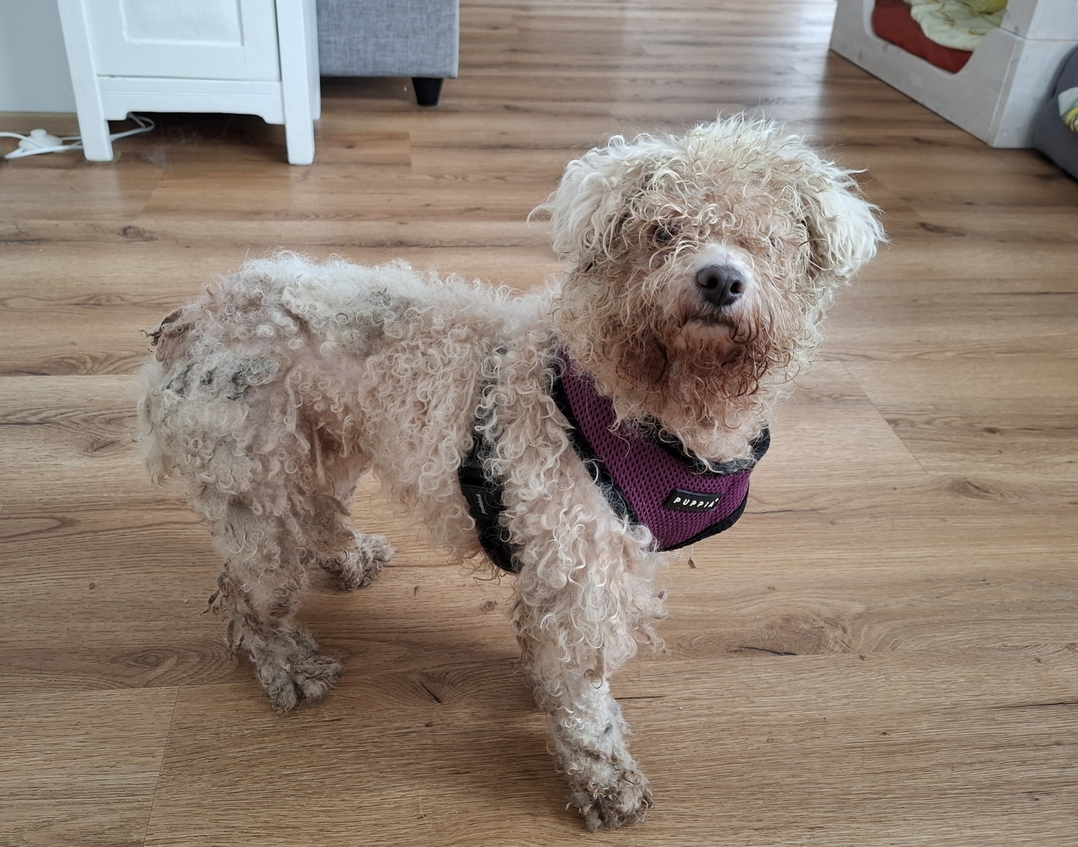 Lexy lebt hier mit mehreren Hunden völlig entspannt zusammen. Hundekontakt ist ihr sehr wichtig. Daher wünschen wir uns einen Platz, wo sie einen Hundekumpel hat, an den sie sich anlehnen und auch mal kuscheln kann. Ihr lockiges Fell muss regelmäßig gebürstet und auch 2-3 x im Jahr geschoren werden. Die Bilder von ihrer Ankunft, die wir mit eingestellt haben, zeigen leider das Ergebnis von mangelnder Pflege.
