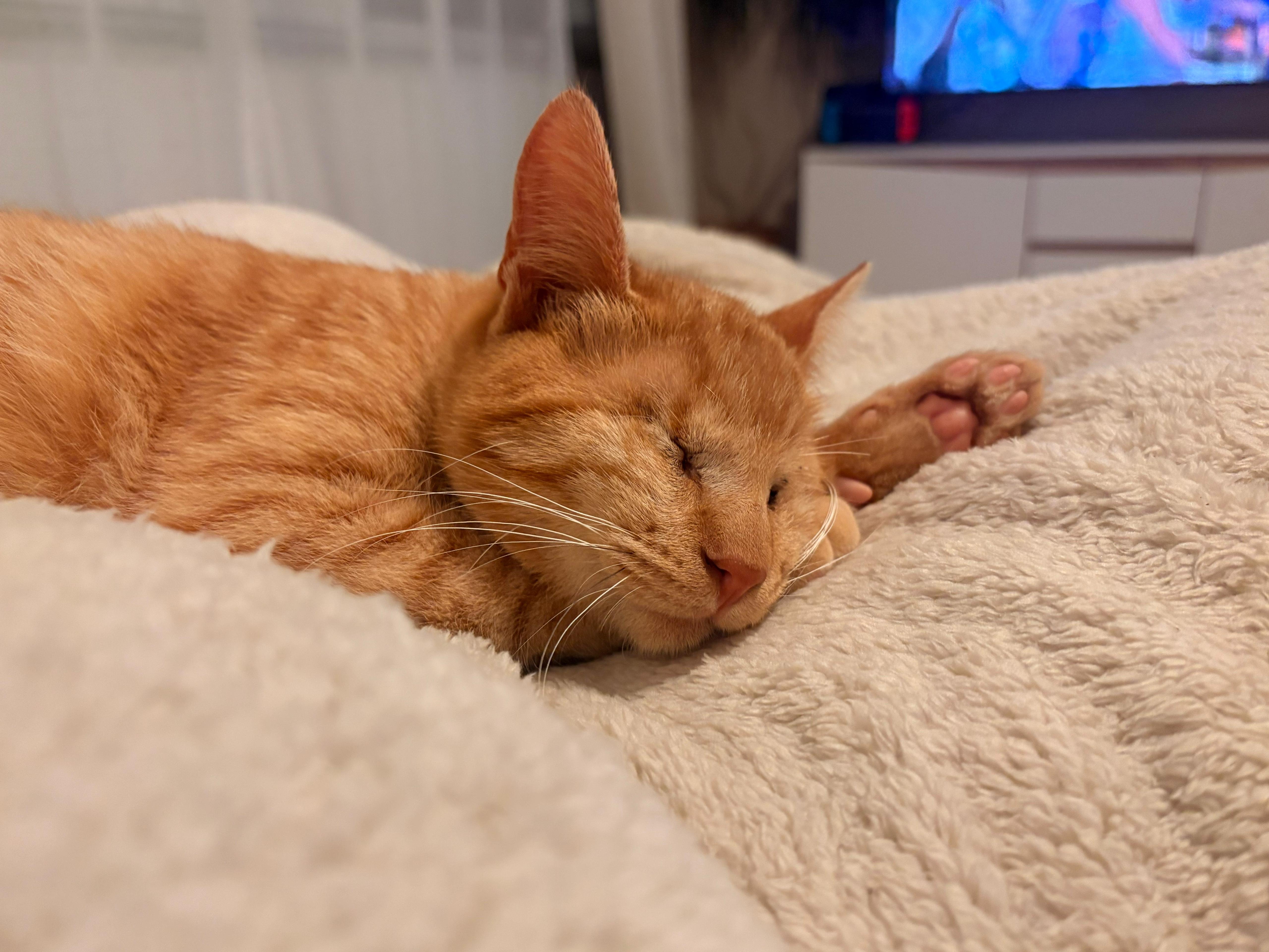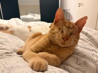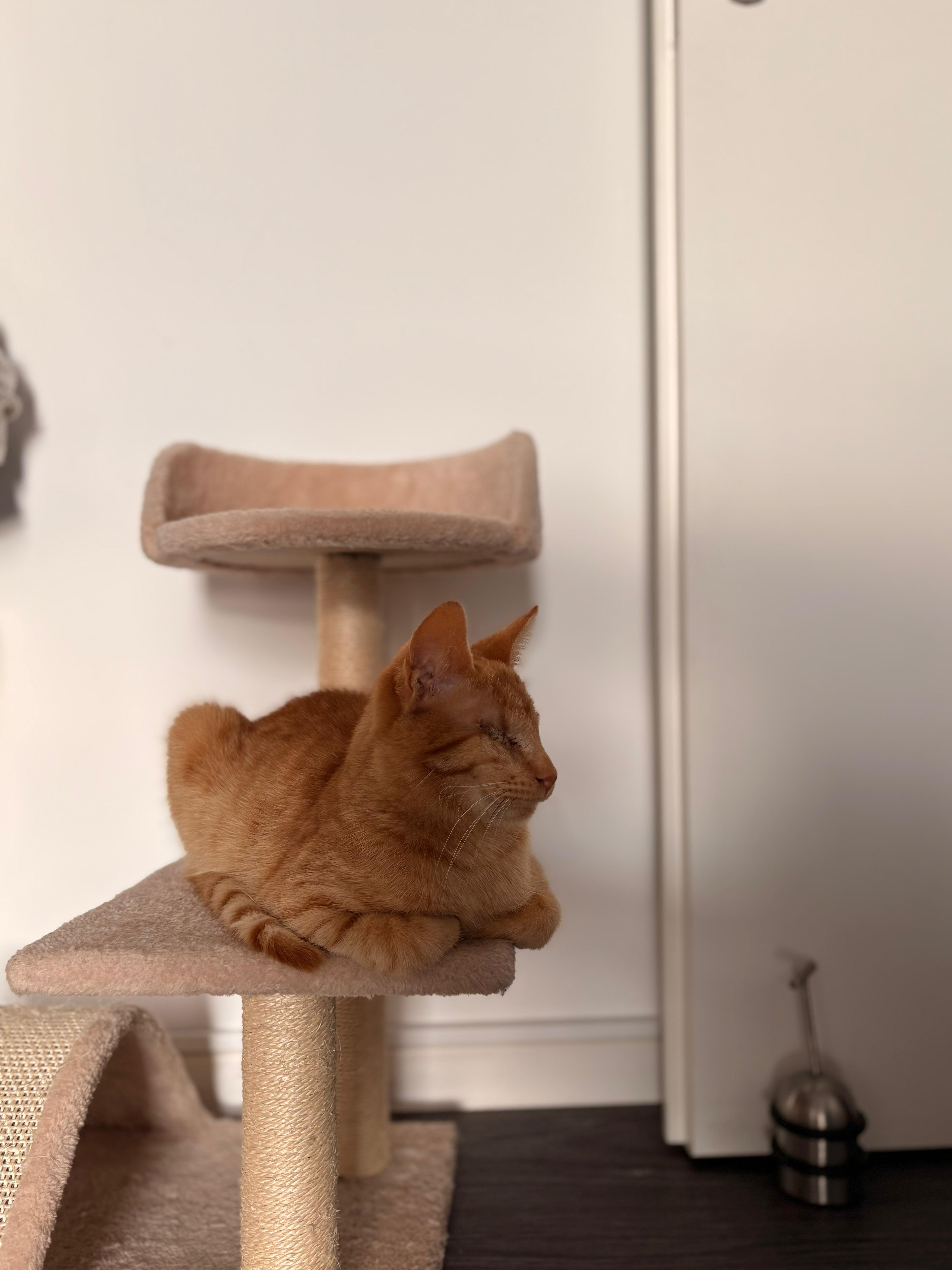 Der arme Knopf hat ja leider schon einiges hinter sich, kommt aber gut mit dem Blindsein zurecht. Er braucht natürlich Zeit, Liebe und Verständnis in einer neuen Umgebung, bis er sich dort sicher fühlt und ganz aus sich rauskommen kann. Dann meistert er seinen Alltag aber mit Bravour und man staunt nur so zu was er alles fähig ist, obwohl er nichts sieht. Er springt überall hoch, ob es auf Stühle, die Couch oder sein Kratzbaum ist, und nimmt seine Umgebung katzentypisch für sich ein.