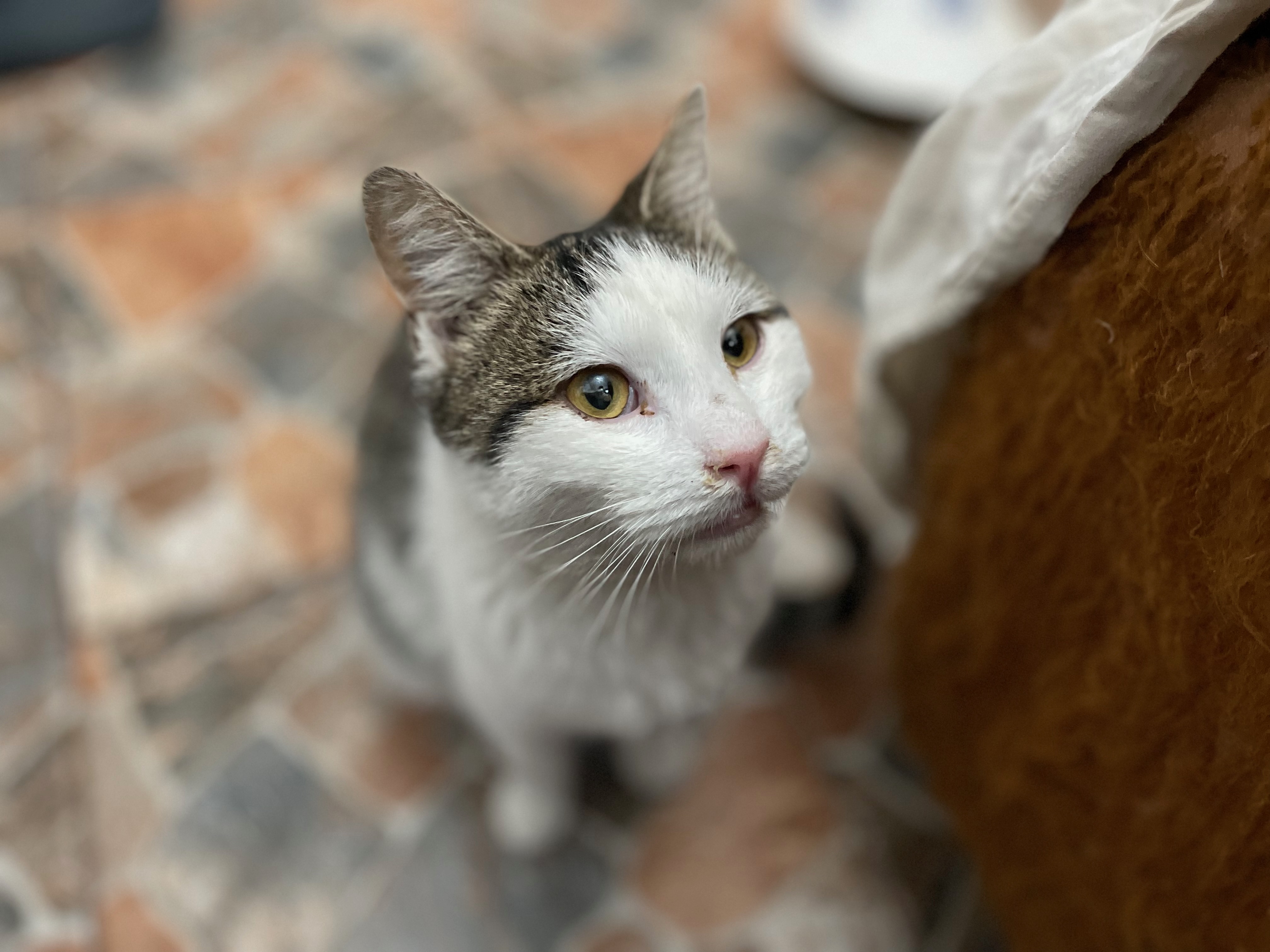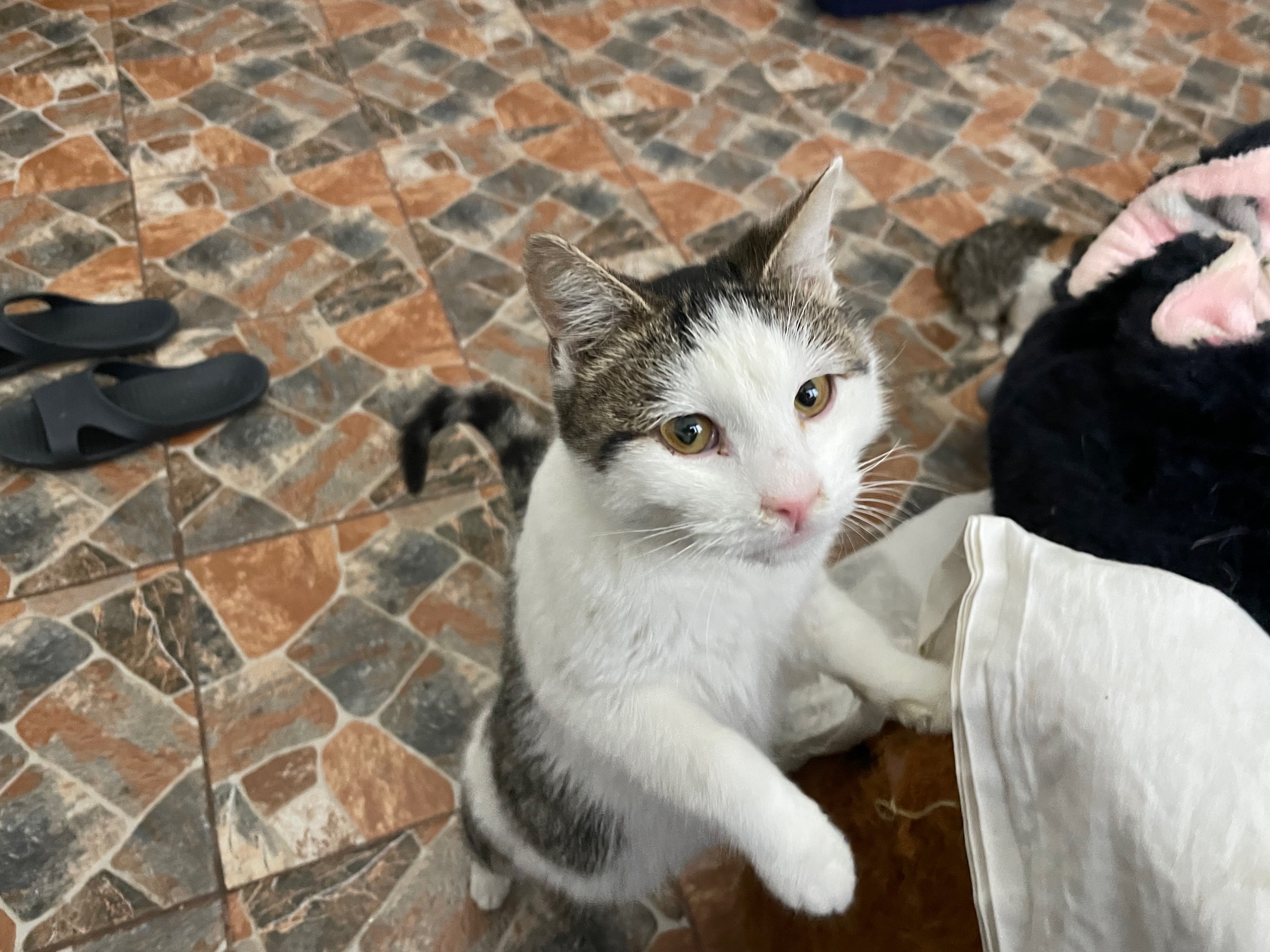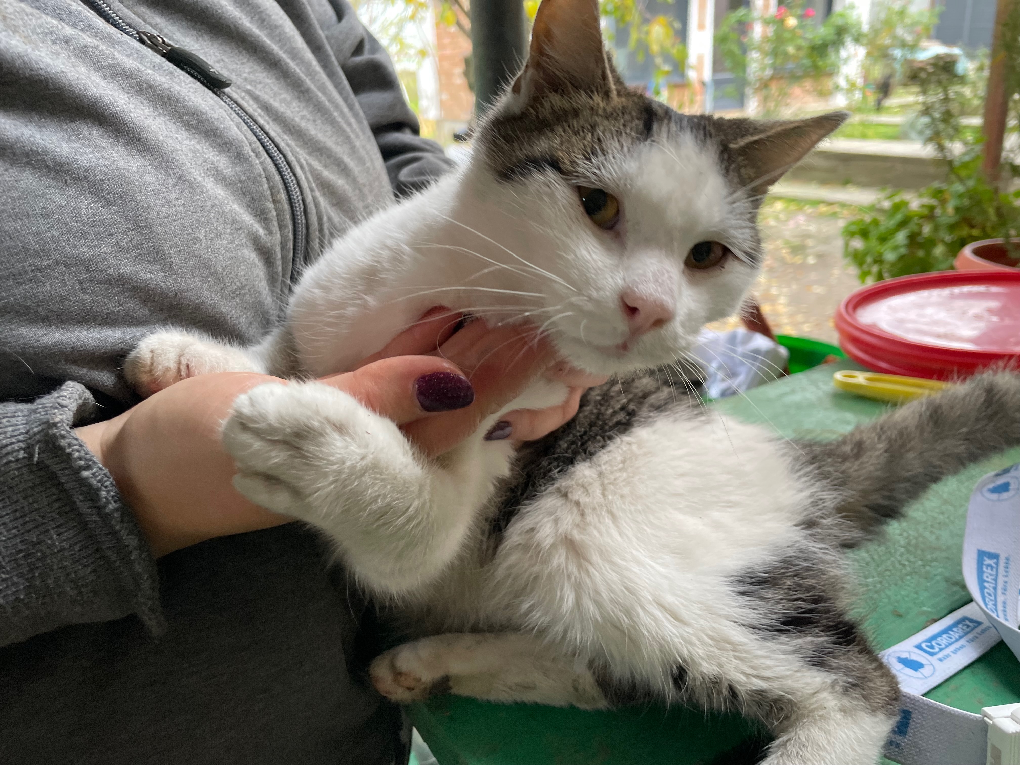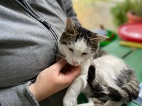 Tibah lag regungslos mitten auf der Straße, Blut quoll aus seinem Maul. Offensichtlich war er unmittelbar bevor angefahren worden. Der kleine Kämpfer erholte sich erstaunlich schnell und hatte großes Glück im Unglück. Er hat nichts vom Unfall zurückbehalten und ist ein rund um freundliches, positives Kerlchen. Eben weil er so menschenbezogen und verschmust ist, möchten wir ihm gerne ein unsicheres, entbehrungsreiches Leben auf der Straße ersparen. Wir hoffen daher, ein schönes Zuhause für ihn zu finden. Tibah versteht sich gut mit anderen Katzen und hat auch mit Hunden keine Probleme. Er wünscht sich ein Zuhause mit Freigang.